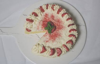 I decorated the cheesecake with some whipped cream and freeze-dried strawberries.