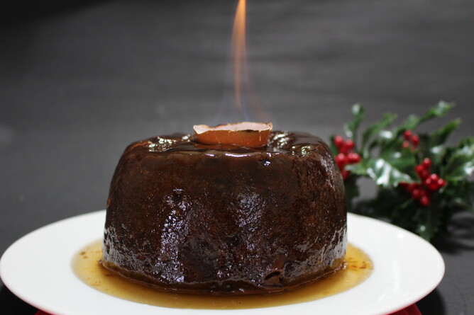 This pudding may be kept refrigerated for several months. The warm pudding may be flamed with brandy. Serves 6-8.
