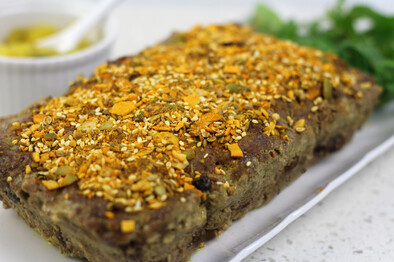 Remove from the oven and stand for 5 minutes. Remove from the loaf pan and place on a serving dish. Sprinkle with one of the toppings. Serves about 6.