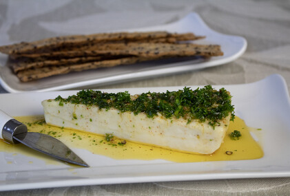 Whisk the remaining ingredients together and pour over the cheese. Cover and marinate in the fridge for 2-3 hours or overnight. Spoon the marinade over the cheese occasionally.