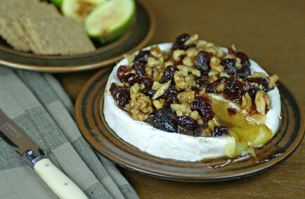 Place the cheese on a heatproof plate. Bake for 5 minutes at 250°C, or microwave on high for 1 minute, until soft and gooey inside.