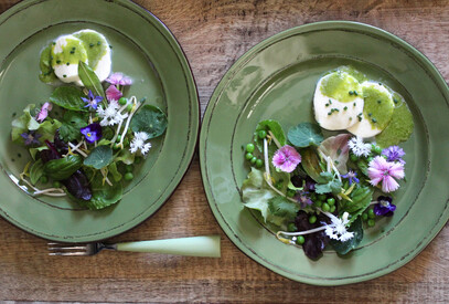 Garnishes: sprigs of French tarragon and oregano, violas, cornflowers, pansy petals, marigold petals, baby beetroot leaves
