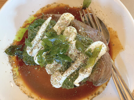 The dishes we enjoyed were deliciously different. Appetising: Agria potato gnocchi, peas, asparagus, lemon, goat curd; and Lamb Henry — a special cut from the lamb shoulder — (I forgot to ask who Henry is/was), zhoug, yoghurt, za’atar, curry leaves. My photo of this melt-in-the-mouth lamb does not do it full justice. (I’ll have to enjoy return lunch for another pic.)