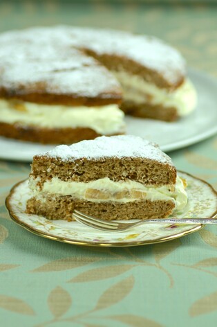To prepare the filling, whip the cream and icing sugar together until thick. Spread half on the base of the cake. Top with the sliced feijoas. Cover with the remaining cream and replace the top half of the cake. Dust liberally with icing sugar. Serves about 8.