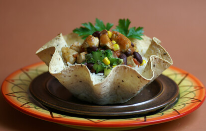 Place the rice in the base of each basket then top with the chicken mixture. Garnish with coriander or parsley. Serve with the combined salsa ingredients. Serves 4.