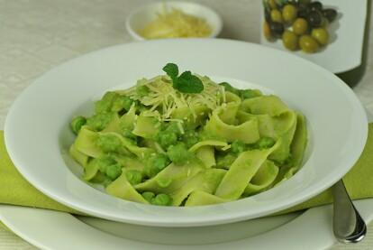 Creamy Pea Pappardelle with Olive Oil