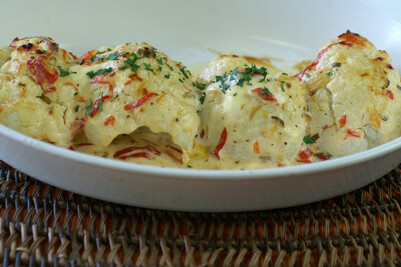 Steam the florets until just tender. Place in a baking dish, flower-side up.