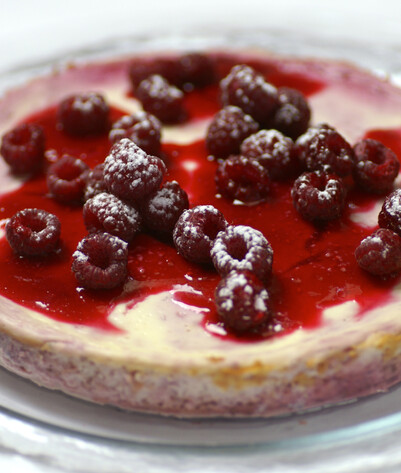 Place the reserved berries for the top aside. Place the others in a pan with the icing sugar. Simmer for a few minutes then mash and sieve. Cool. Drizzle over the chilled cheesecake and top with the reserved berries. Serves 6.