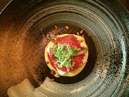 Recently Mat introduced his Chef’s Table degustation dinner that showcases divine delicacies for two to six people. Located next to the kitchen, guests can watch the antics that play out during food prep and cooking. We relished the experience which is rather like a TV show (although there weren’t any ‘Gordon Ramsay’ events) and you get to enjoy some outstanding small tastes.