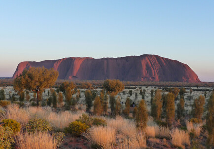 There is a sense of anticipation amongst those in the viewing area as we watch the shadows fall away from Australia’s most recognizable natural wonder. We’ve all seen numerous pictures but nothing has prepared us for the real thing. The sun eases up over the horizon behind us and a rich redness washes over the mauve monolith. Rising majestically 348 metres above the sandy floodplain with an impressive girth of 9 kilometres, 600-million-year-old Uluru is a natural light show par excellence. During the day, as the sun moves across its many faces they change through shades of fiery red, blues, pinks and browns. And when it rains — yes, it does rain here — rich deposits of iron mean that Uluru actually rusts.