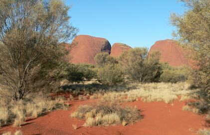 Oven-like heat envelops us as we emerge, water bottles at the ready, from our air-conditioned cocoon into the red glow of Kata Tjuta and head for the slopes to begin our hike up the Walpa Gorge. This is Dreamtime country and as we walk, dwarfed by the moody, glowering gorge walls that seem to move under the ever-changing shades of vibrant red, iridescent orange and burnt yellows, it is easy to appreciate that for the Anangu, Kata Tjuta has great significance — a world alive with spirits and legends.