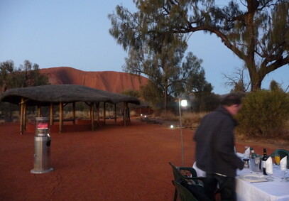 Sunset. And the party is just beginning. Jan and I stand on a desert dune sipping sparkling wine, nibbling canapés and admiring uninterrupted 360° views of the vast reddening wilderness with Uluru as the blushing centrepiece. This is the prelude to a unique dining experience under the stars — the Sounds of Silence. As dusk falls, we drift with the convivial crowd down to our table in the desert — set with crisp white linen, polished silverware and glasses brimming with bubbly —to enjoy a three-course dinner; a real taste of Australia including smoked kangaroo crepes, crocodile Caesar salad and barramundi in chilli and wattle seed glaze. Afterwards, the resident ‘Star Talker’ — a kiwi — takes us on an amusing and informative tour of the dazzlingly clear night sky, which to me appears to be dusted with an infinity of glittering, smashed ice crystals. Maybe I’m influenced by the chilly desert air.