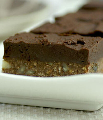 Crush the biscuits in a food processor — but not too finely. Melt the butter and sugar in a saucepan over low heat. Whisk in the egg and bring to boiling point. Add the cocoa, walnuts, sultanas and vanilla essence. Press into the prepared pan and chill.