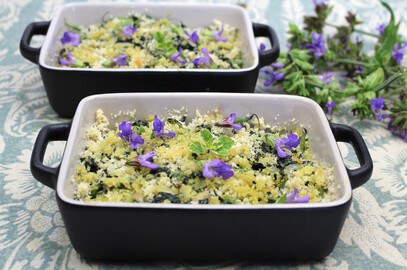 Cheese or eggs combine well with vegetables but grains are also protein rich and add interest to many summer meals. Whole-grain Israeli or pearl couscous is a great base for warm or cold salads however, it is not gluten-free. Brown rice could be substituted.