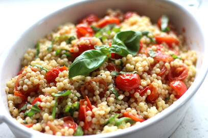 ISRAELI COUSCOUS, TOMATOES & BASIL