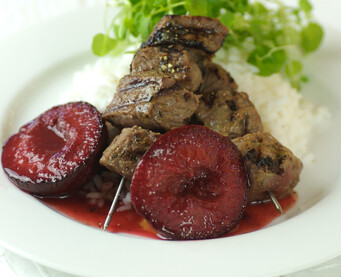 Bake for 20 minutes, until the plums are hot and the sauce is bubbling. Serves 4.