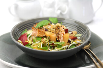 Luscious fruits are the essence of summer. Peaches, apricots, nectarines, plums and melons are the basis for many traditional desserts. But they can also be fashioned into refreshing savoury salads especially those with Asian-inspired dressings containing lime juice, root ginger, mint and coriander.
