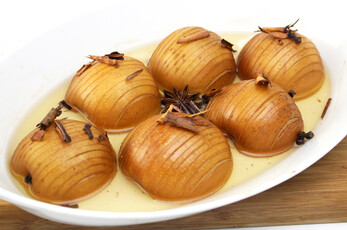 Place — cut-side down — in a baking dish just large enough to hold the nashi in a single layer.