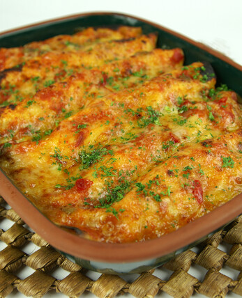 Warm the tortillas for 30 seconds in the microwave. Place the chicken down the centre of each tortilla. Top with the sour cream mixture then roll up and place seam-side down in a lightly greased 28cm x 21cm baking dish.