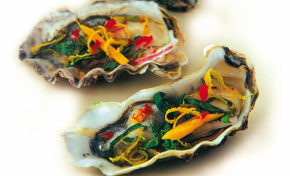Place the oysters on a serving plate and spoon the dressing over. Serves 2 as a starter.