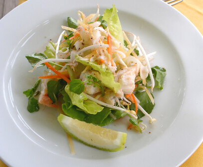 Pile the seafood and salad on four serving plates. Serves 4 as a starter.