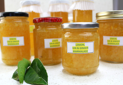 Remove from the heat and stir in the sugar, until well dissolved. Add the gin and ginger. Boil rapidly for about 10 minutes or until the marmalade reaches setting point — 104°C. Ensure it does not stick on the base by stirring occasionally with a wooden spoon. Scoop off any foam from the top and place in a bowl to use on your toast the next day.
