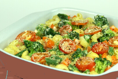 Meanwhile, whisk the eggs, milk, flour, mustard, herbs and seasonings in a bowl. Drain the pasta and vegetables through a sieve or colander. Place the egg mixture in the empty saucepan. Whisk over low heat, until thickened. Stir in the cheese, until melted. Return the pasta and vegetables to the saucepan and heat through.