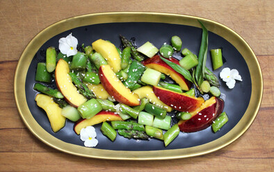 STIR-FRIED PEACHES, NECTARINES, ASPARAGUS & BABY LEEKS