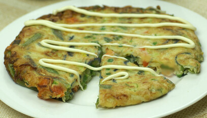Japanese vegetable pancakes. Great drizzled with Japanese mayo eg Kewpie.