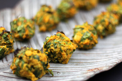Peel, cook and mash the kumara. Cool. Combine with the shallot, ginger, garlic, green chilli, spinach, cumin seeds and egg. Season.