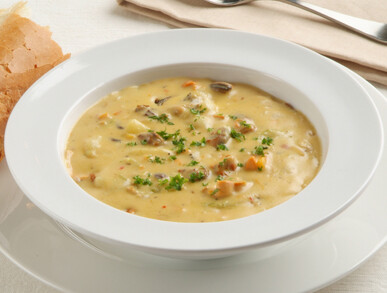 Chowder is one of the heartiest of soups — a great winter lunch or dinner. The word chowder is a corruption of the French chaudière (cauldron), and this soup/stew may have originated among Breton fishermen who migrated to Canada taking the custom to Newfoundland where it’s popularity quickly spread. Although originally a seafood speciality, today it may contain meat and is often thickened with potatoes and corn.