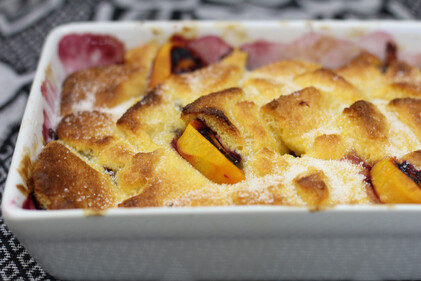 Tamarillos have long been popular in crumbles, upside-down puddings and hot fruit sponges. For change, I’ve adapted a French toast recipe as the topping for my baked tams. If brioche is unavailable, use fruit bread or white bread.