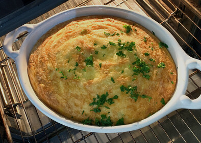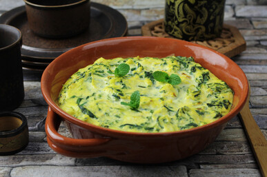 Tip into the baking dish. Bake for about 40 minutes, until just set. Serves 6-8 as a side dish or 4 as a main.