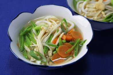 Comfort food. I used enoki mushrooms — separate them slightly. If using shiitake or button mushrooms, slice before using.
