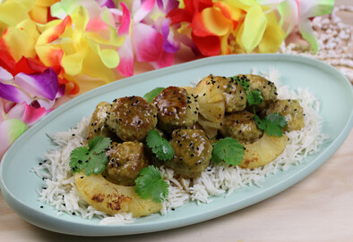 Combine all the sauce ingredients well in a saucepan. Stir over medium heat until thickened and bubbling. Pour over the meatballs and simmer them gently for 10 minutes, until cooked. Great garnished with back sesame seeds or nigella seeds. Serves 4.