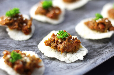 If you can’t find these crumbs, purchase crisp rice cakes and whizz them in the food processor.