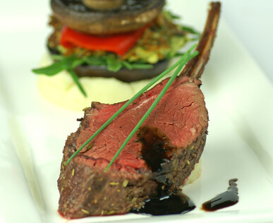 Slice the rib chops from the rack and place on hot serving plates. Serve with a little balsamic glaze. Serves 4.