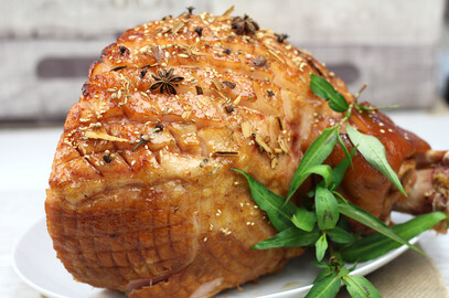 If the ham is to be served hot, bake at 160°C for about 10 minutes per 500 grams. If it is to be served cold, cook at 180°C for about 45 minutes, turning and brushing with glaze every 15 minutes.