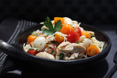 Combine the noodles and remaining salad ingredients in a large bowl and gently toss together with the dressing. Serves 2.