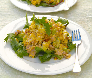 Mesclun, diced ham and a mustard vinaigrette is a simple but simply super salad. Or try traditional crunchy lettuce broken into small chunks and topped with blue cheese and chicken and drizzled with lemon juice; or cubed rock melon tossed in a chilli vinegar dressing then combined with bean sprouts and cold salmon.