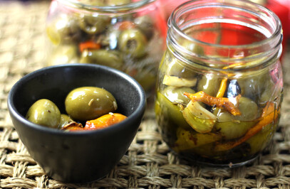 Roast for 15 minutes stirring once or twice. Divide the olive mixture between 2-3 small jars. Add fennel seeds to each. Add the vinegar and cover with olive oil. Store in the refrigerator for up to 4 weeks. Makes 2 cups.