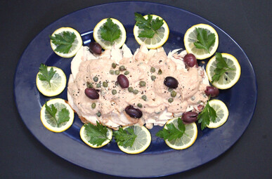 Chicken topped with tasty tuna. A twist on the popular Italian dish, vitello tonnato.