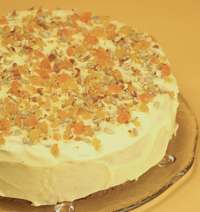To prepare the icing, beat the cream cheese, butter and icing sugar together until smooth. Spread over the cooled cake. Garnish with the extras.