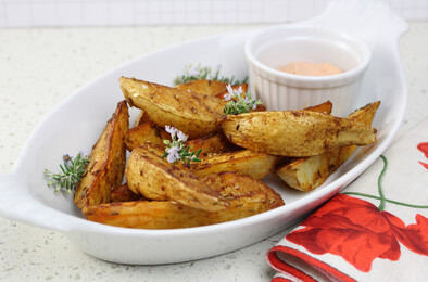Bake for 20-25 minutes, until cooked and crisp. Using tongs, turn the wedges halfway through cooking. Serves 4.