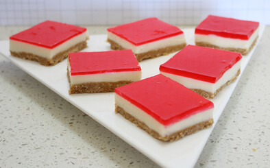 Take the jug to the fridge and carefully pour the jelly over the firm condensed milk mixture. Chill for 1 hour or until the jelly is set.
