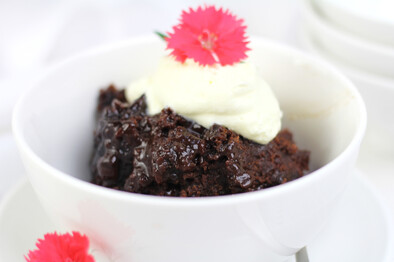 Combine the brown sugar, cocoa powder and boiling water. Pour down the sides of the slow cooker insert. Cover and cook on high for 1 1/2 – 2 hours. The cake top will come away from the sides and the sauce will bubble up around the edges.