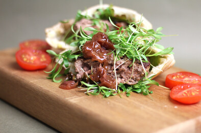 Serve in the warmed pita pockets with the microgreens and chutney. Serves 4.