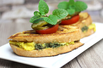 CURRIED POTATO & PICKLE TOASTIE WITH SALSA VERDE