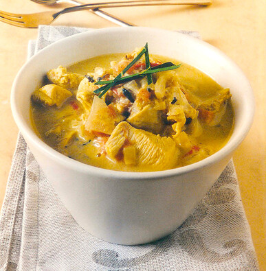 Add the chicken and simmer for about 20 minutes on the hob or 30-40 minutes in a 180°C oven. Serves 4.