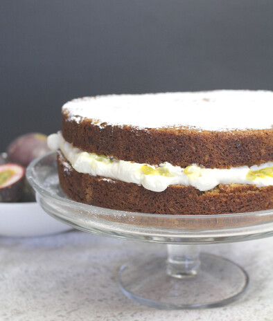 To prepare the filling, whip the cream and icing sugar together until thick. Fold in 2 tablespoons of the passionfruit pulp. Spread on the base half of the cake. Drizzle with the remaining passionfruit. Top with the remaining half cake. Great dusted liberally with icing sugar. Serves about 8.